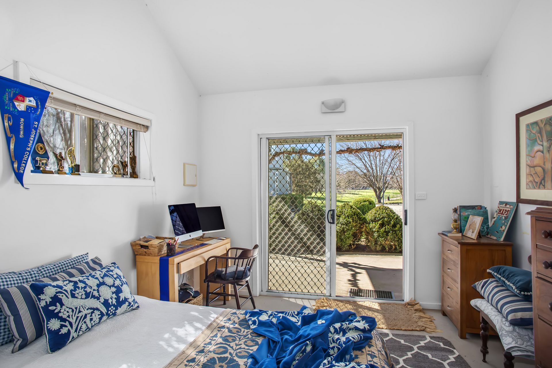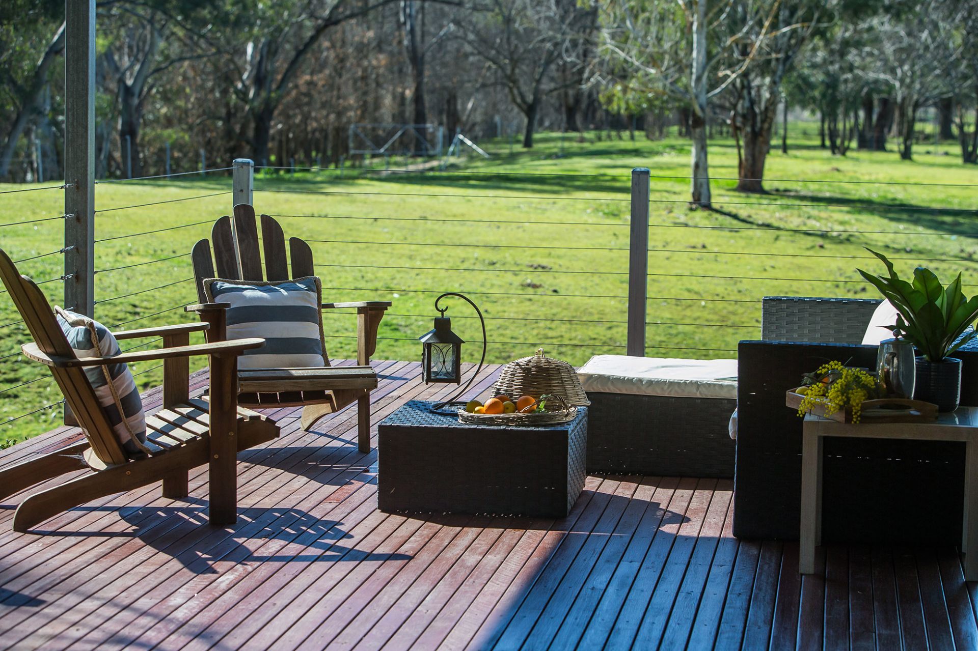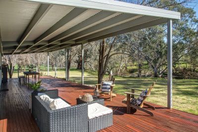 Low-maintenance lawns, mature shade trees, manicured hedges, and mulched garden beds create a private and picturesque setting. The timber deck provides uninterrupted views of paddocks and Billabong Creek, ideal for entertaining or quiet enjoyment.
