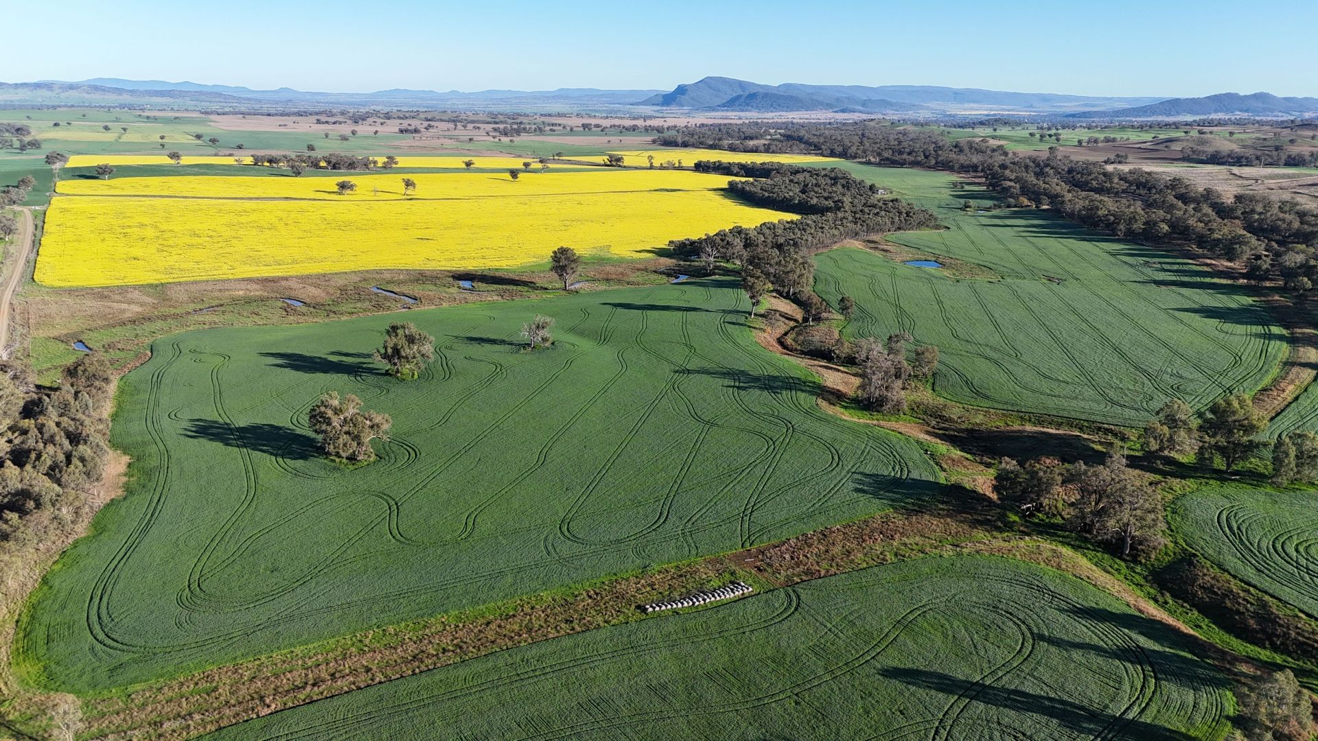 The property is mostly flat mixed-farming country featuring highly fertile and well developed heavy red basalt soils. Considered 90*% arable.