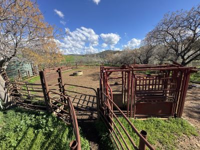Features steel cattle yards and vet crush, loading ramp (all weather truck access), machinery/hay shed, older residence, sundry shedding and electric energizer unit.