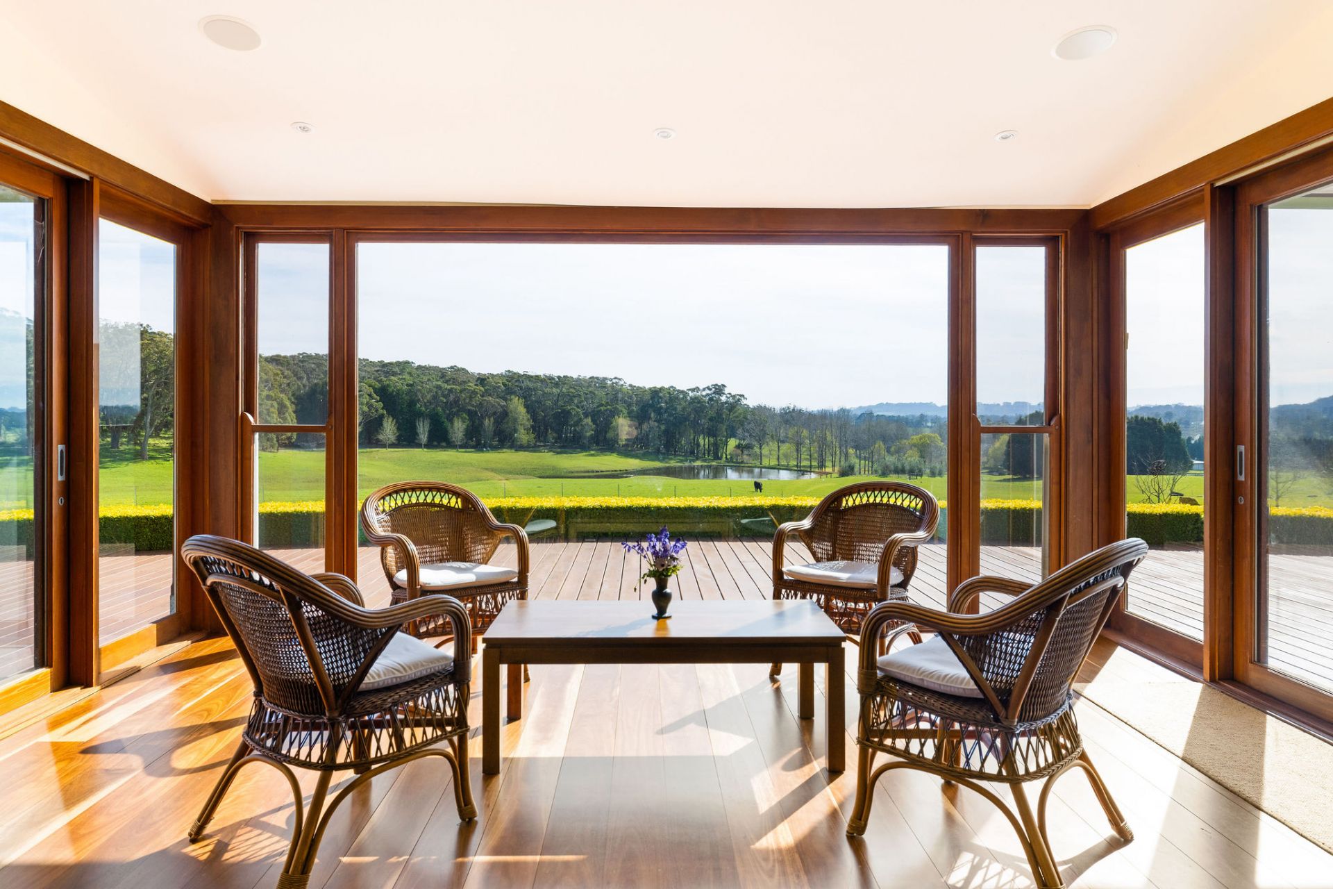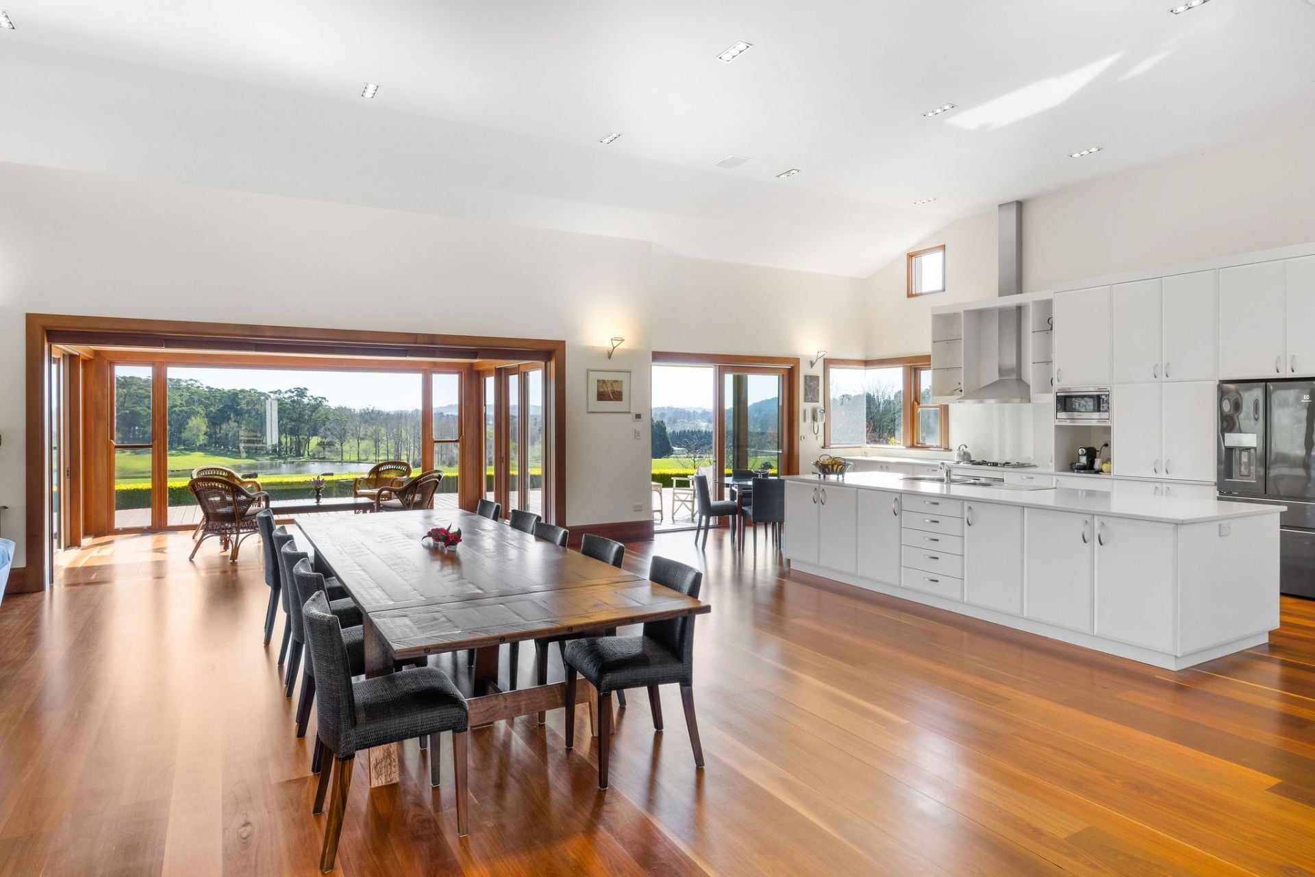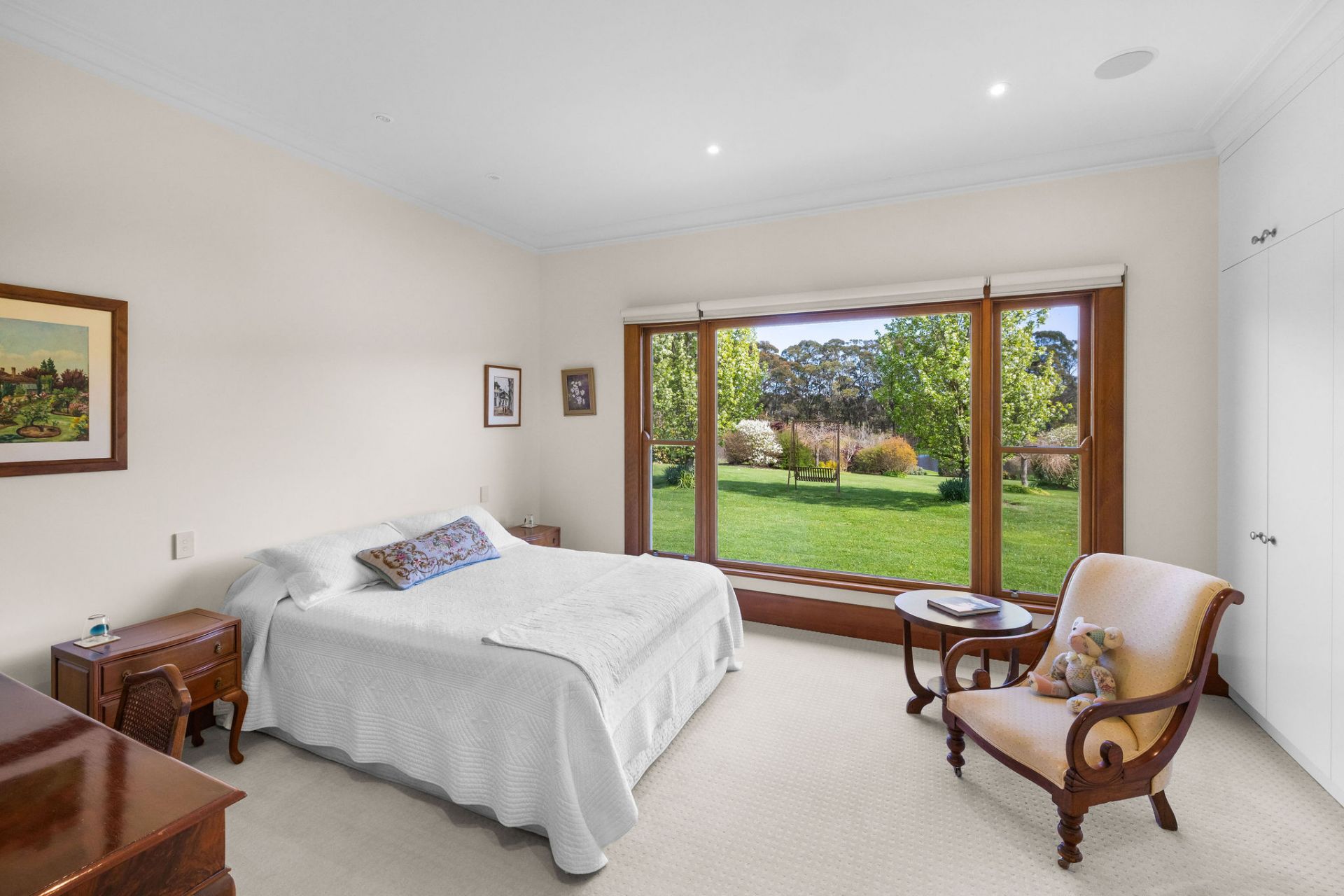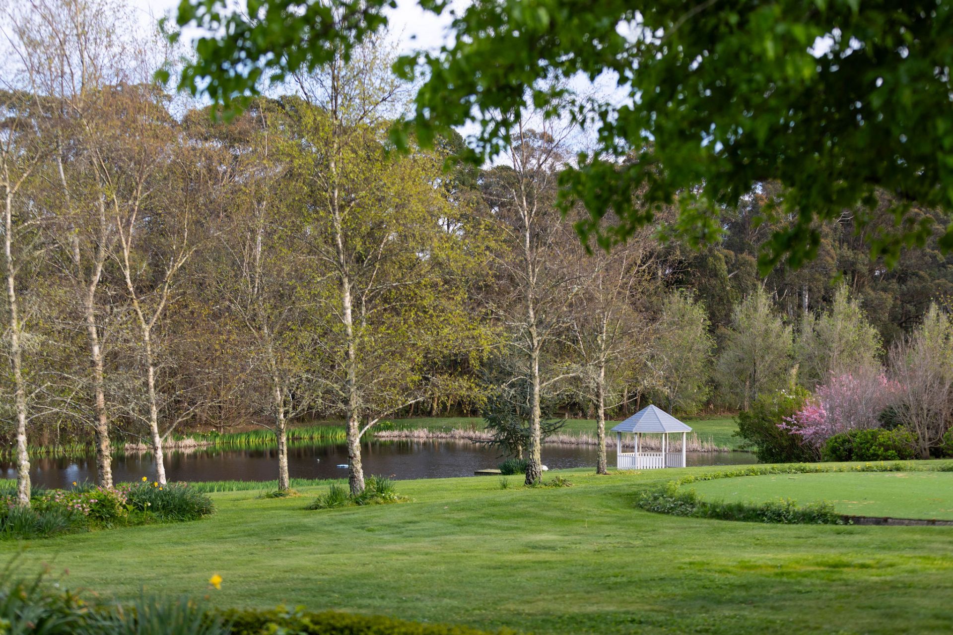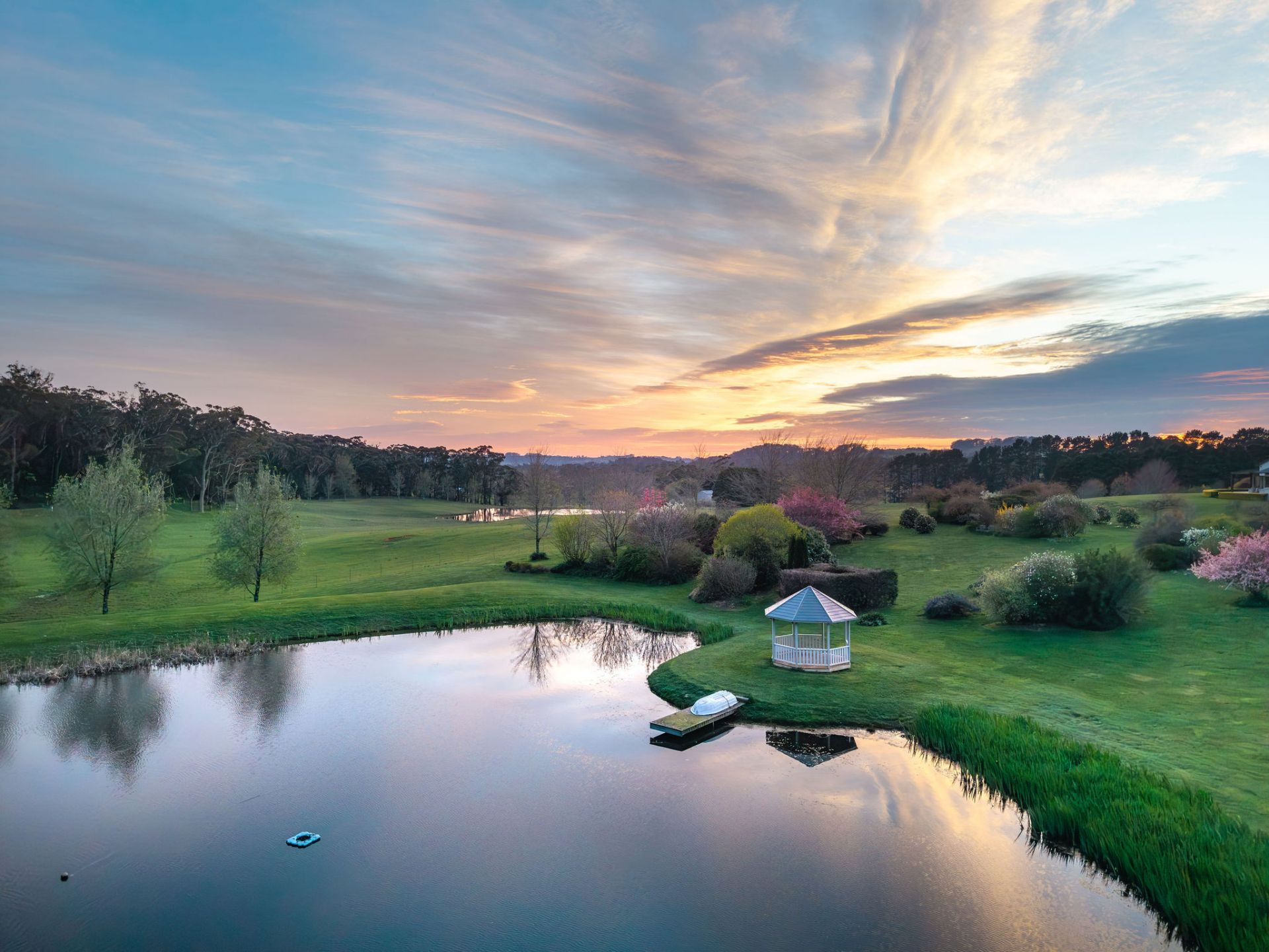 Set amongst parkland gardens by Chris and Charlotte Webb Landscape Designs, with sweeping lawns and well-maintained garden beds plus ornamental lakes, flowering trees, and stonework create a sense of timeless charm.