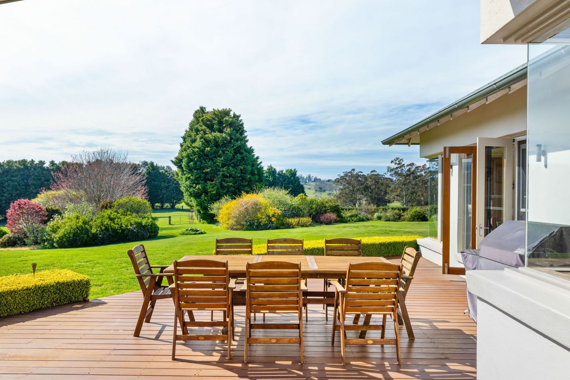 The Ardeevin Homestead is a charming 4-bedroom, 4 bathroom residence of grand proportions, surrounded by mature trees and sweeping rural outlooks. The homestead is very well-appointed with bespoke design, an open-plan kitchen, dining and living pavilion as well as outdoor entertaining spaces. The homestead was architecturally designed by Martin O'Toole and built by local builder Jim Sell.