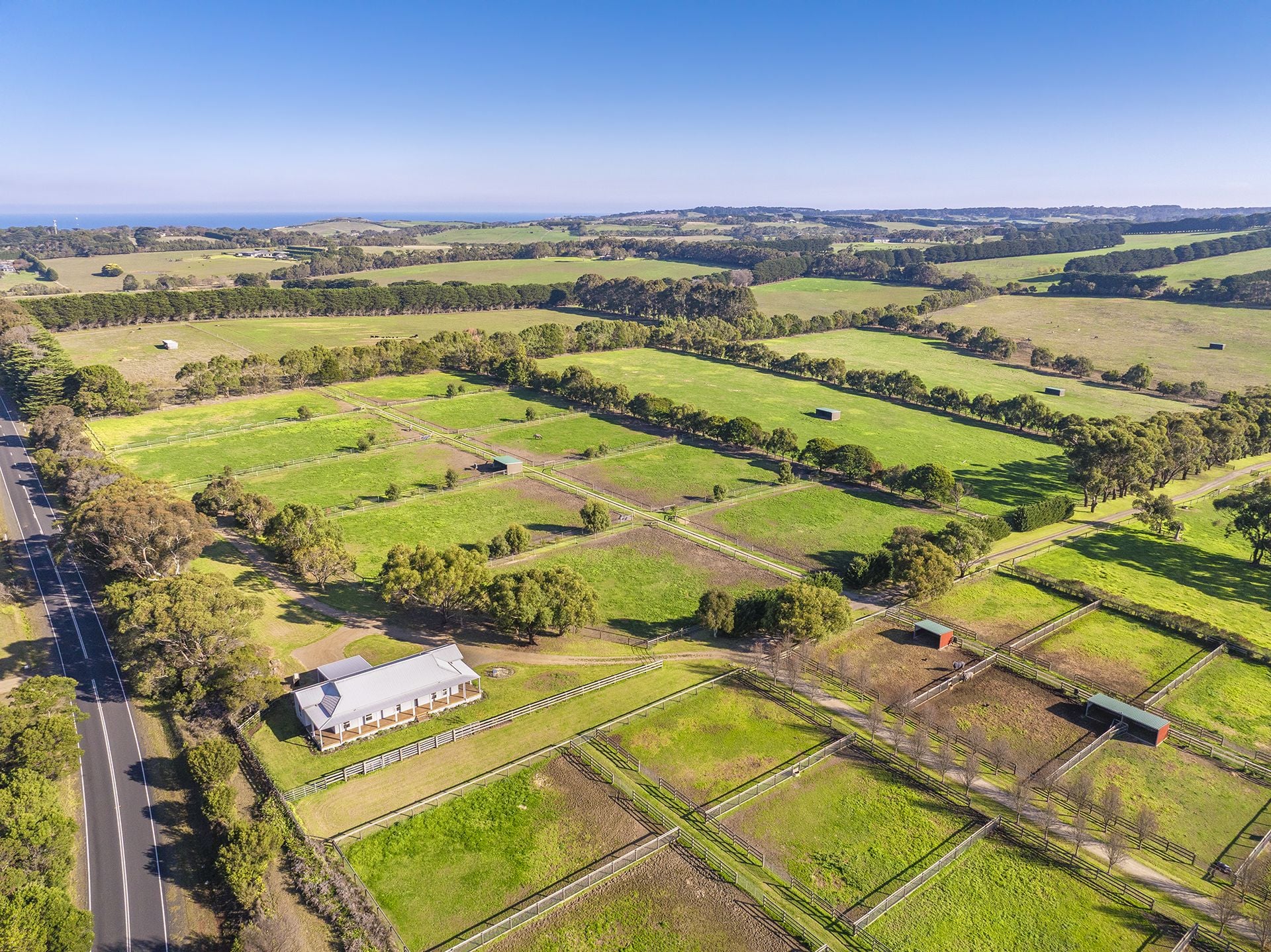 Gently undulating land with fertile soils and oustanding improved pastures. The farm is subdivided into a mix of large and small paddocks with horse-safe post and rail fencing and laneway access. Cleared of internal timber and enhanced by mature boundary tree lines and natural drainage, the land is ideally suited for equine or agricultural pursuits.